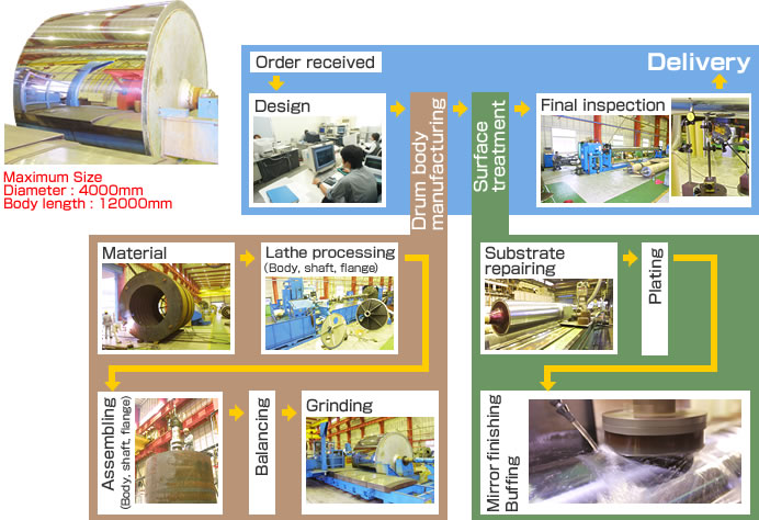 Only Nomura plating can supply the rolls from designing and manufacturing