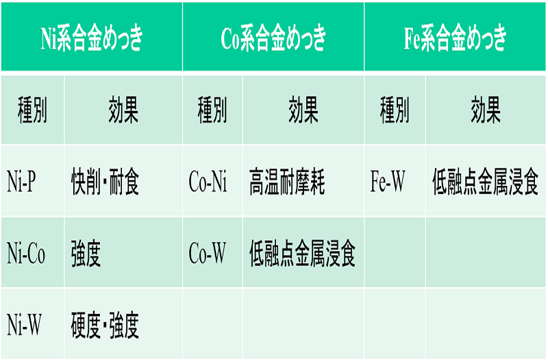 合金めっきとは複数の金属・非金属を成分として、