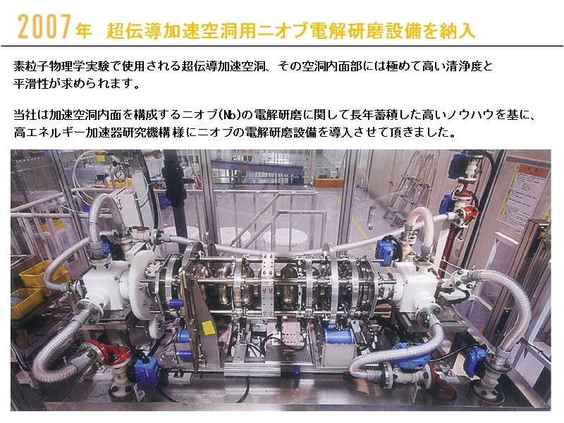 高エネルギー加速器研究機構(KEK)様に 当社設計のニオブの電解研磨設備を納入 いたしました。 |