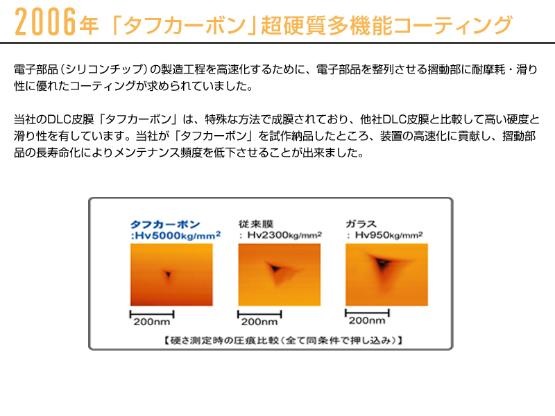 半導体をはじめとする電子部品チップマウンターに、当社 DLC「タフカーボン」 が採用されました。これにより部品寿命が飛躍的に延び、生産性の大幅な向上に寄与しました。 |